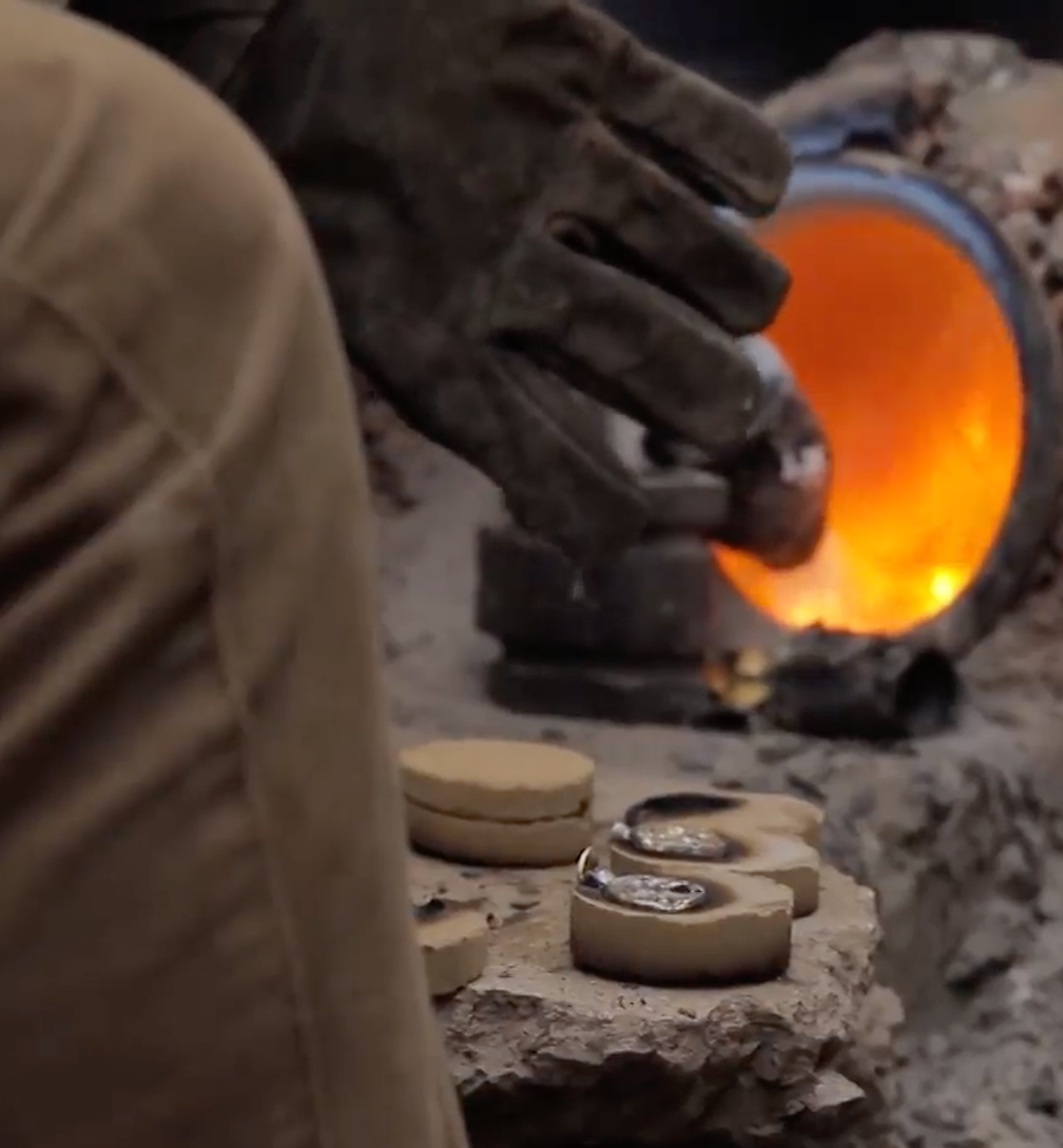 We work with Kenyan artisans to collect discarded sinks, padlocks, and other salvaged metals, melting them down and hand-casting them into one-of-a-kind buttons and adornments inspired by indigenous rocks, flora, and coral textures.