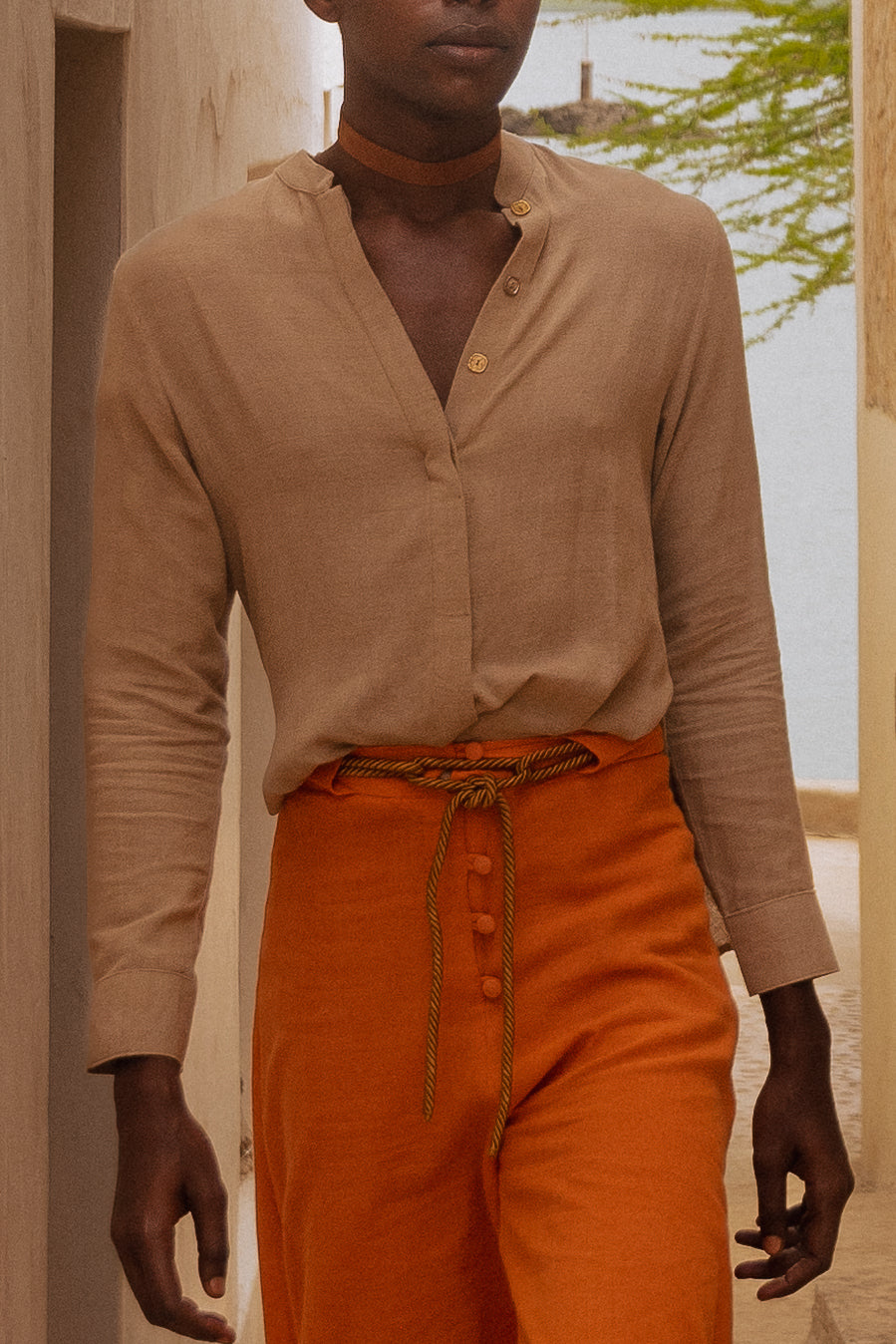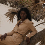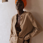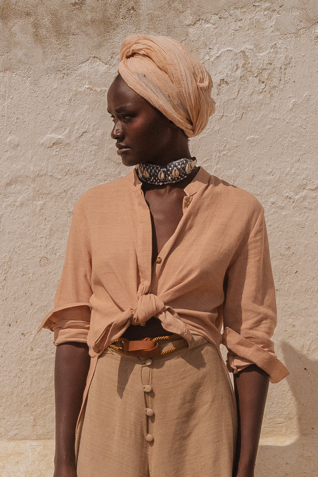Each piece begins in our Nairobi atelier, where we bring artisans together to reinvent ancestral techniques with a practice of botanical dyeing, hand embroidery, handweaving & in-house textile fabrication.