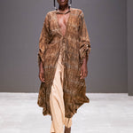 Kimono breathes new life into our signature sari-inspired drape and gathered sleeves, with a round collar with plunging neckline & waist tie. Handloomed in Nairobi from LilaBare signature cotton weave. The Kali print is fabricated by hand in-house. Made from local origin, botanically dyed, rain-fed cotton. Produced in small-batch runs to maintain craftsmanship and consistency across wholesale orders. Fabricated and finished in our Nairobi atelier, where each piece is hand dyed, assembled, and detailed by our in-house artisans. Finished with handcast brass buttonl. A fresh update to a LilaBare hero piece. Crafted to order for our wholesale partners with care.