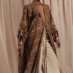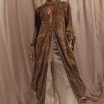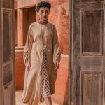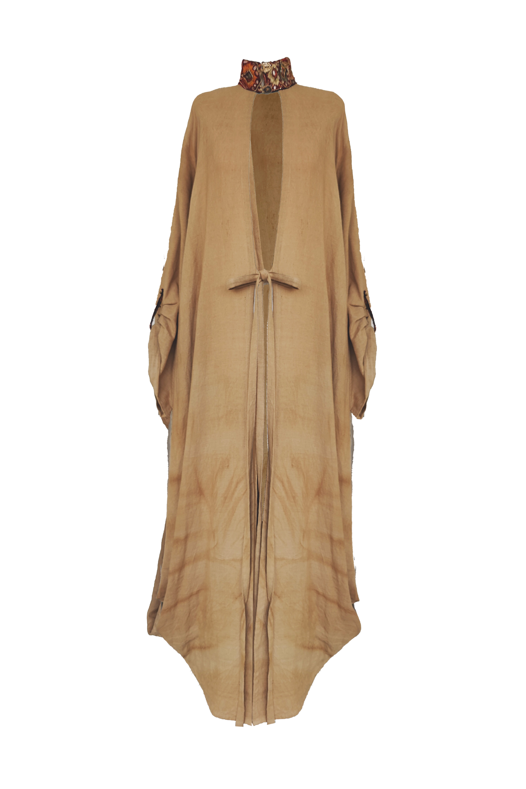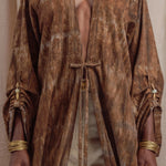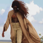 Our signature sari-inspired drape and gathered sleeves, with a vintage sari buttoned choker, plunging neckline & waist tie. Handloomed in Nairobi from LilaBare signature cotton weave, dyed by hand with indegenous plants..