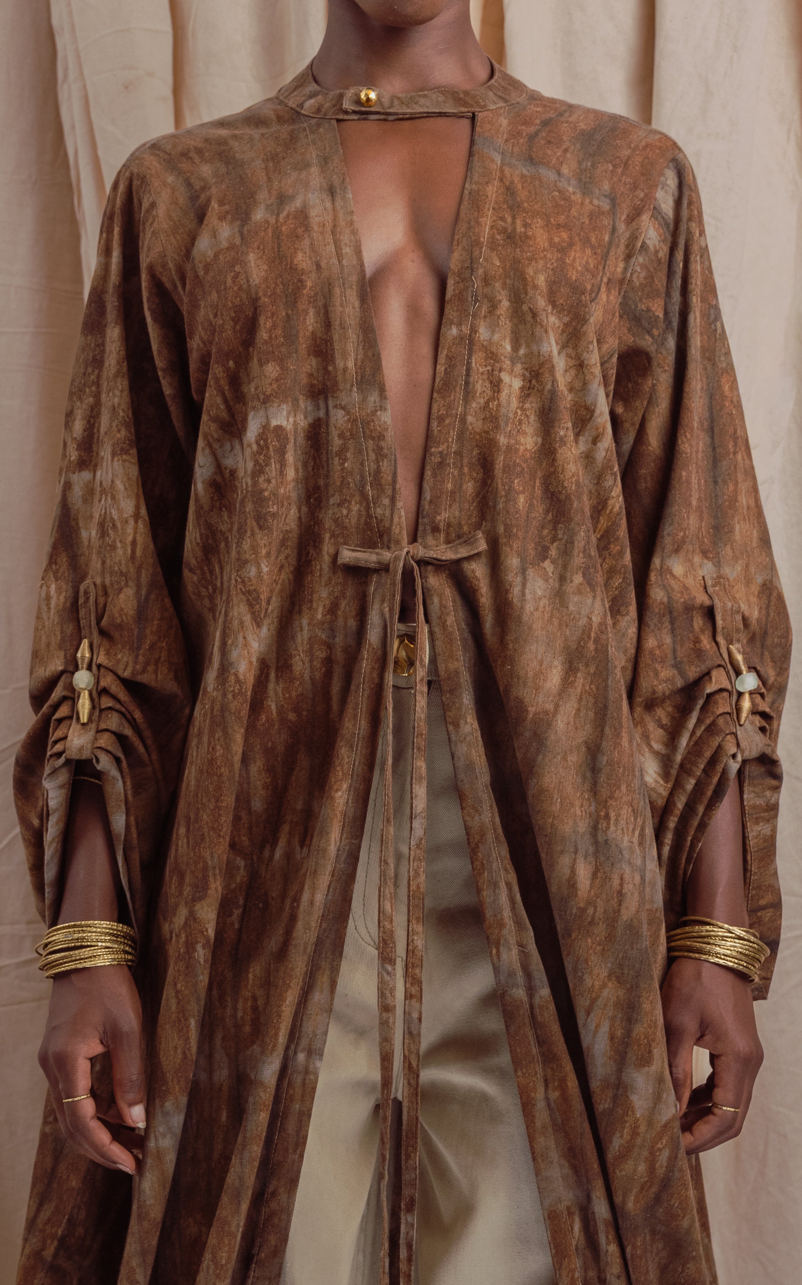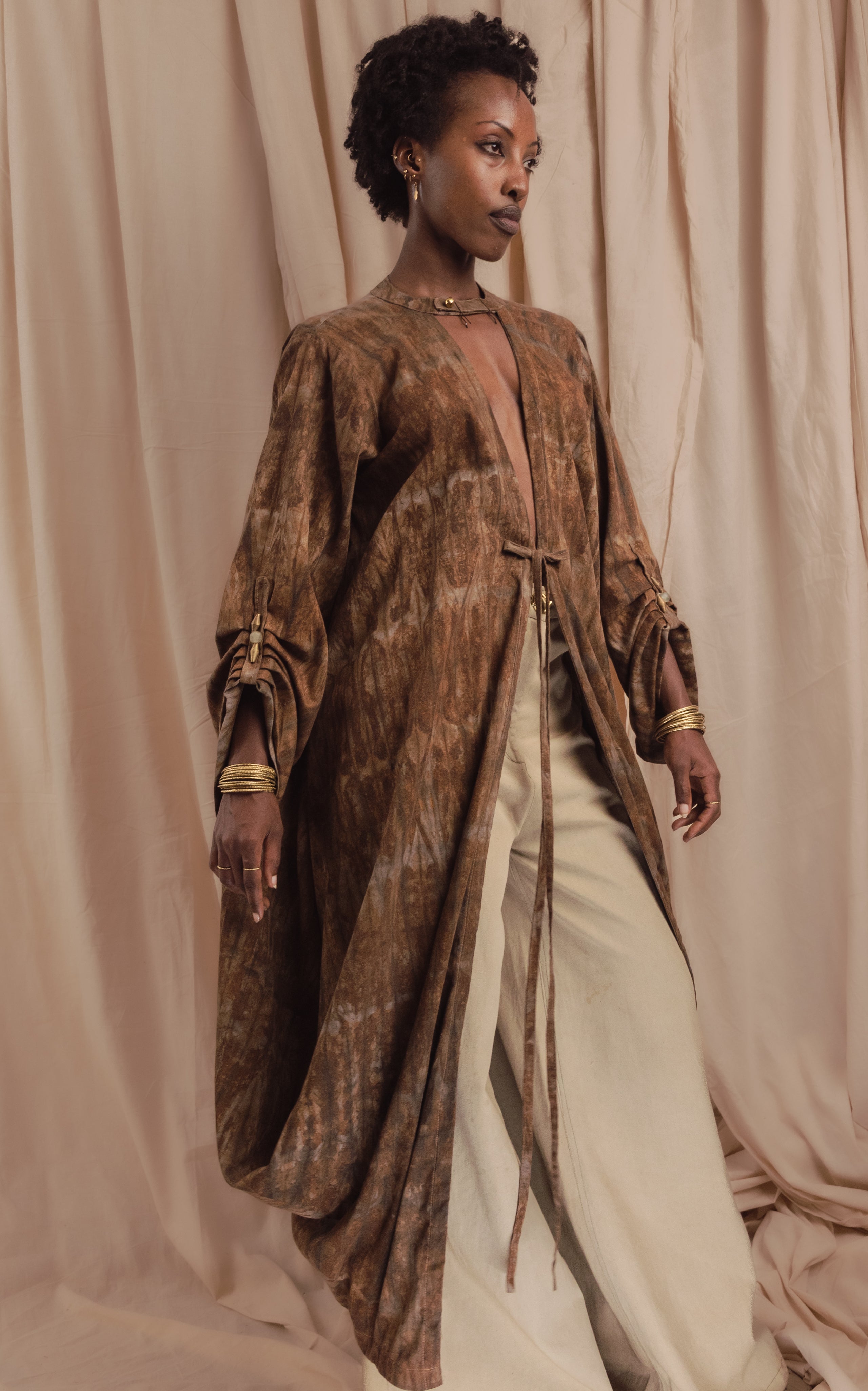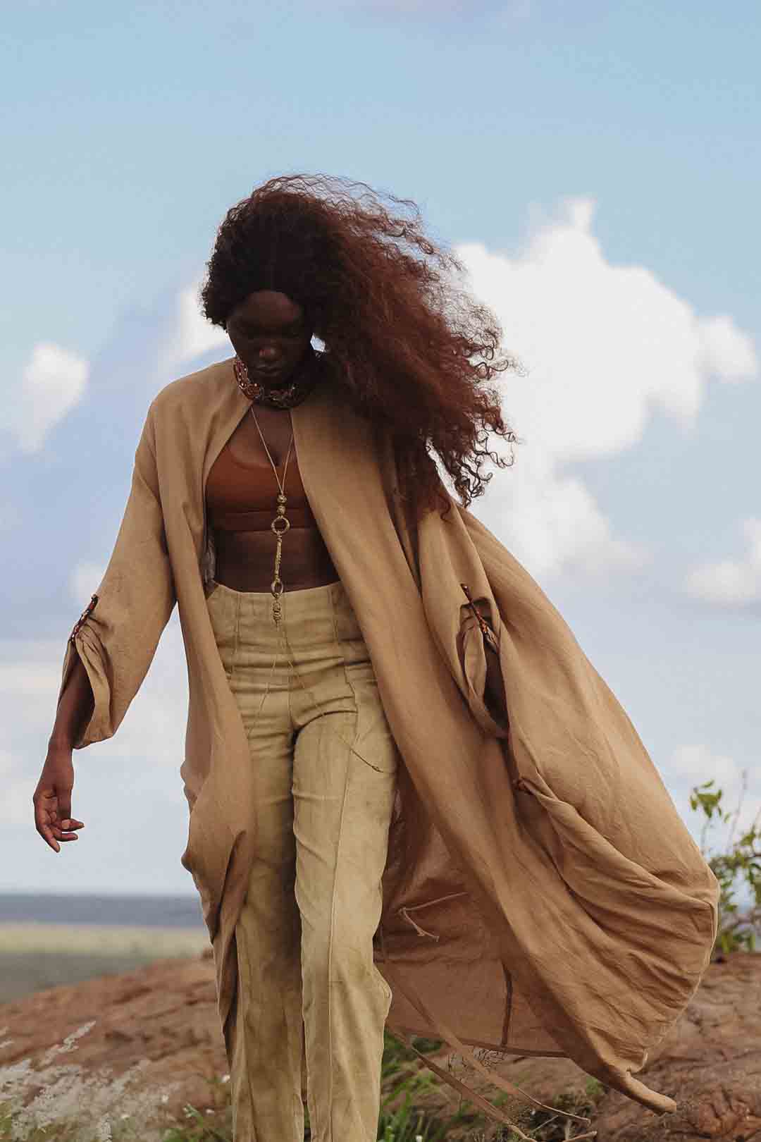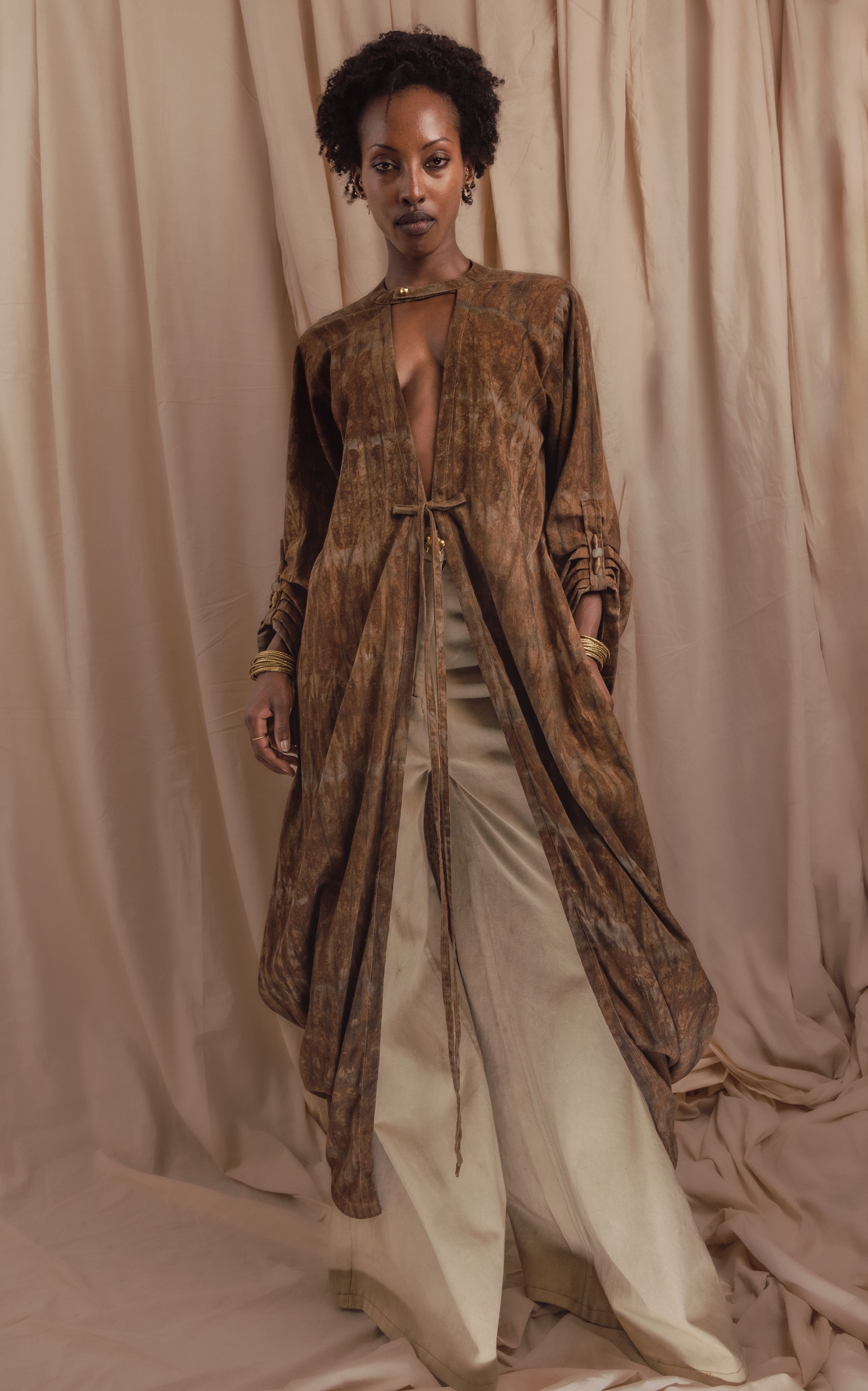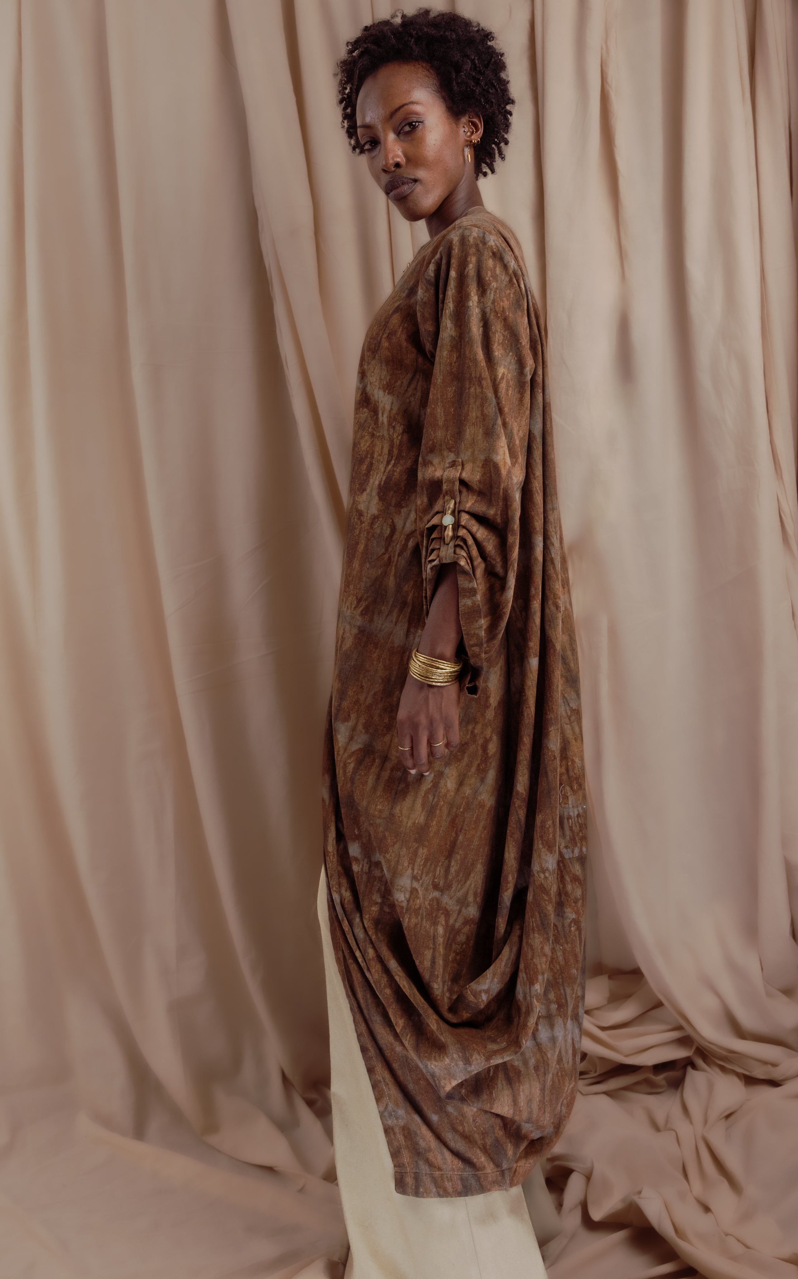 Each piece begins in our Nairobi atelier, where we bring artisans together to reinvent ancestral techniques with a practice of botanical dyeing, hand embroidery, handweaving & in-house textile fabrication.