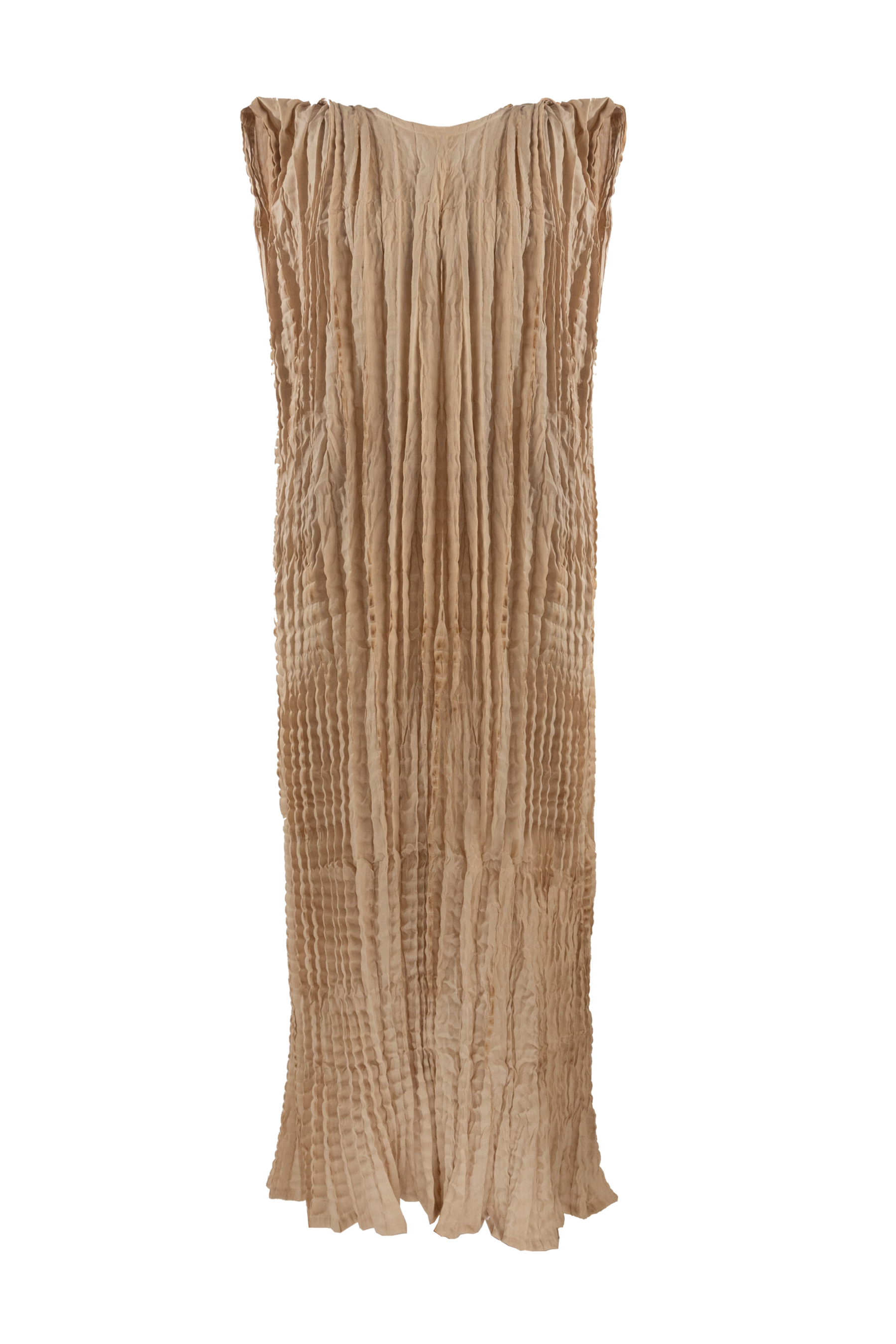 Cap sleeve with inbuilt shoulder pad, midi length. Crushed texture is fabricated in our Nairobi atelier by hand, which moves with the natural contours of the body.